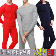 包邮男士全棉秋衣秋裤套装本命年大红色套装中老年基础打底纯棉套