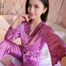 真丝睡衣女春夏季薄款长袖性感蕾丝女士套装长裤丝绸家居服加大码