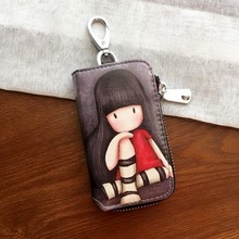 韩国可爱彩印牛皮钥匙包女士真皮腰挂锁匙扣包卡通手拿车钥匙扣包