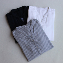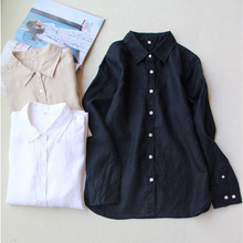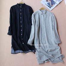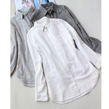 日单原单新款无印MUJ*风格高品质法国亚麻文艺气质长袖白衬衫女
