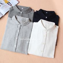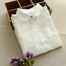 日系外贸原单无印风森女清新文艺彼得潘小圆领白色棉麻衬衫女