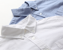 新款日单外贸无印MUJ*风格男女情侣牛津纺棉良品纯白蓝色长袖衬衫