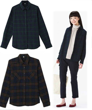 日单MUJ*风格外贸尾货无印有机棉法兰绒磨毛经典格子良品衬衫女