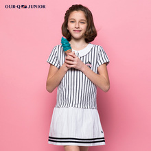 OURQ女童连衣裙 夏季新款裙子 中大童条纹纯棉连衣裙OMUG-OP51C