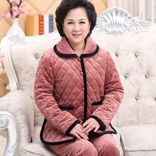 冬季中老年人睡衣女冬加厚珊瑚绒三层夹棉中年妈妈加绒款老人套装