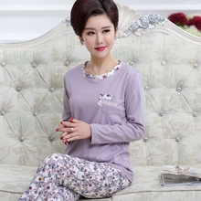 2016秋季中老年人全棉长袖长裤睡衣女中年妈妈款纯棉大码套头套装