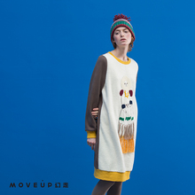 MOVEUP幻走2017女装夏季新品 圆领趣味印花宽松中长款T恤女短袖