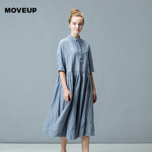 MOVEUP幻走 2016女装夏季新品 文艺绣花衬衫式梭织连衣裙
