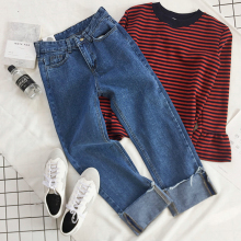 夏装牛仔阔腿裤女新款卷边大码九分裤bf风学生宽松韩版休闲直筒裤