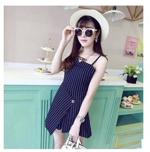 春夏小香风条纹两件套背带连衣裙韩版吊带女t恤休闲两件套装包邮