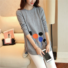 韩版中长款宽松显瘦女装针织衫2017春季新款绣花毛衣女套头打底衫