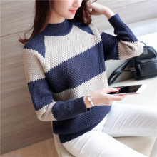 半高领毛衣女春季时尚宽松韩版条纹加厚短款打底衫长袖套头针织衫