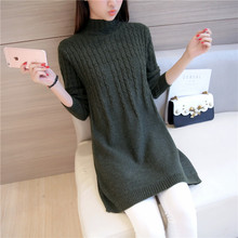 春季女装新款半高领针织连衣裙宽松显瘦加厚复古中长款打底毛衣裙