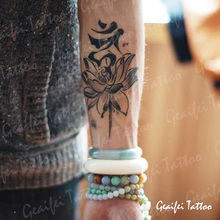 格艾菲纹身贴-水墨莲花纹身贴 文艺刺青 手臂纹身 梵文 逼真 防水