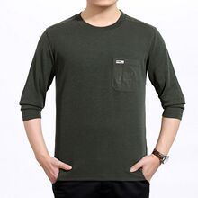 春秋新款中老年男士长袖T恤圆领全棉t桖衫宽松大码体恤纯棉爸爸装