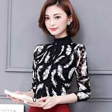 春装上衣女2017韩版潮妈妈装春秋长袖蕾丝打底小衫印花衬衫30岁40