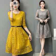 春秋季长袖修身显瘦蕾丝连衣裙打底30大码40岁中年妇女妈妈装裙子
