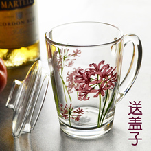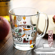 欧洲进口无铅玻璃杯马克杯有把水杯创意印花茶具茶杯子 有带盖子