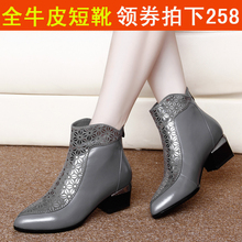 伊蒂卡诺2017春秋新款全真皮短靴女鞋镂空靴网靴中跟女单靴及裸靴