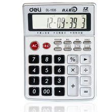 得力1535语音型真人发音大屏显示计算器12位数(银色)(台)
