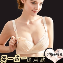 孕妇妈薄模杯无钢圈聚拢防下垂喂奶内衣前开扣式纯棉浦哺乳期文胸