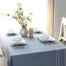 【喔品居】淡蓝色条纹餐桌布欧式乡村简约咖啡厅桌布台布布艺定做