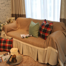 【喔品居】米白深咖棉麻拼接美式田园乡村布艺沙发巾沙发盖巾定做