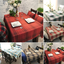 【喔品居】酒红格子餐桌布田园美式咖啡厅桌布台布茶几布布艺定做