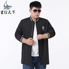秋季新品男装加肥加大码中长款夹克衫大号薄款风衣胖人棒球领外套