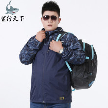 春秋户外冲锋衣男薄款加肥加大码冲锋衣单层肥佬宽松登山服胖子