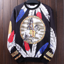 2015春秋款上新 男士印第安人印花直筒宽松太空棉卫衣 青天白龙马
