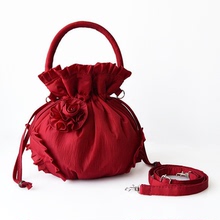 天天特价蕾丝时尚女包妈妈逛街买菜手拎中包手机包抽绳水桶小布包