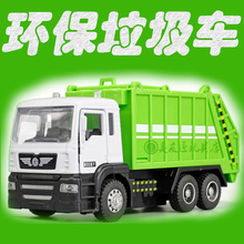 儿童垃圾车环卫车回力工程车清洁车合金模型开门声光建元玩具车模
