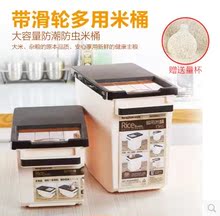 米桶储米箱15kg厨房防潮塑料米箱米缸防虫可移动滑轮储米器