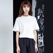 夏季韩版潮中袖简约百搭休闲学生宽松纯色圆领白色短袖t恤女