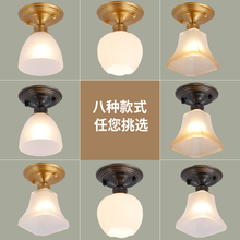 美式全铜吸顶灯欧式卧室铜灯走廊灯过道灯简欧小玄关中式阳台灯具