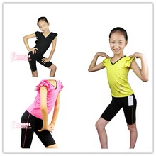 儿童舞蹈练功服夏季女童短袖棉质拉丁舞服装少儿训练形体服中国舞