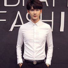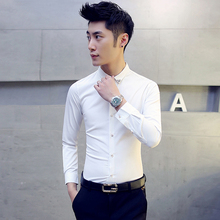 英伦府春装男士韩版黑衬衣修身款长袖商务发型师休闲免烫白色衬衫