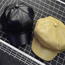 范冰冰同款秋冬新款PU皮质简约贝雷帽 画家帽 纯色皮八角帽男女潮