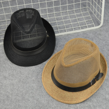 英伦复古透气遮阳凉帽礼帽男士夏天网格草帽爵士帽帽子户外太阳帽