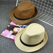 遮阳帽子 女夏天韩版潮棉麻草帽男士小礼帽春夏季户外休闲爵士帽
