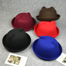 帽子女韩版毛呢春夏秋英伦爵士卷边圆顶小礼帽情侣丸子帽亲子遮阳