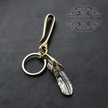 阿美咔叽复古纯铜高桥goros鹰爪羽毛U型钩铜钥匙扣纯铜钥匙挂件