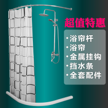 浴帘杆弧形浴帘套装l型卫生间l形淋浴房浴室浴杆带挡水条