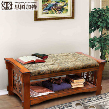 思图加特家具美式乡村实木换鞋凳欧式玄关鞋凳鞋店长凳换鞋凳