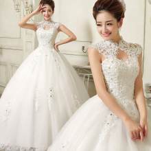 婚纱礼服新娘齐地新款香槟色冬季韩式复古立领齐地公主奢华包肩蓬