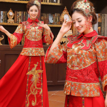 中式结婚礼服新娘秀禾服婚礼敬酒服龙凤褂长袖婚纱旗袍红色冬季款
