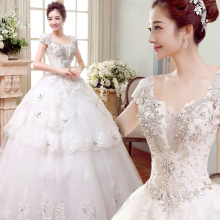 媛菲莎妮新款双肩韩式婚纱礼服 显瘦婚纱玻璃水钻蓬蓬婚纱齐地