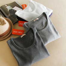 2016秋冬加厚一字领纯棉内拉绒百搭长袖t恤女纯色修身上衣打底衫