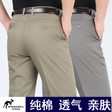 萨克袋鼠纯棉休闲裤男士商务宽松直筒男裤子春夏季薄款中老年长裤